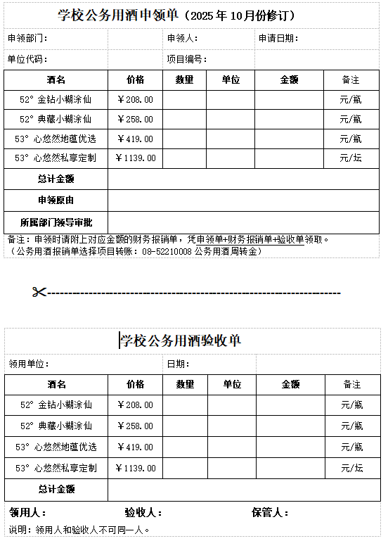 学校公务用酒申领单(2025年10月).doc
