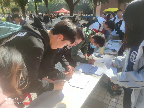 同学们积极参与现场问卷调查活动(李荣邦 摄)