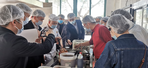 会后,交流会人员前往学校第一食堂进行现场参观,先后参观了食堂的用餐环境、健康食堂宣传区、健康菜品销售窗口、健康菜品的烹饪过程。在健康食堂宣传区,交流会人员现场参观了食堂膳食平衡宝塔模型、体重秤、BMI尺的配置,对我校健康食堂创建的理念和知识普及宣传工作给予充分认可。在厨房操作区,交流会人员详细交流了第一食堂专门定制的控盐勺、控糖勺和控油壶等专用工具的设计理念和使用方法,对我校健康菜品烹饪过程中低油、低盐、低糖的有效控制措施有了深入的认识。