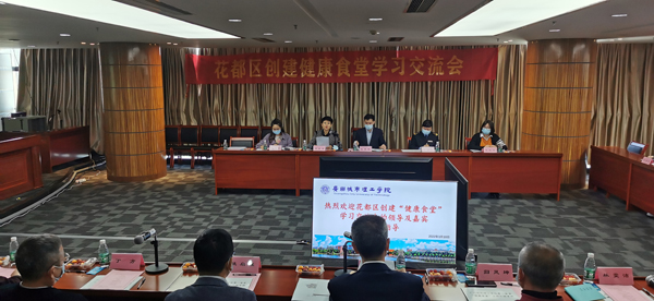 3月10日,由花都区卫生健康局主办,花都区市场监督管理局、花都区教育局协办,我校承办的花都区创建健康食堂学习交流会在行政楼617会议室顺利举行。花都区卫生健康局、花都区市场监督管理局、花都区教育局的有关领导,花都区秀全中学、花都区灵格风中英文学校、花都区育德幼儿园、花山镇万科热橙幼儿园4所学校和我校后勤处、第一食堂创建健康食堂工作负责人参加交流会。学校副校长尚启超出席会议。