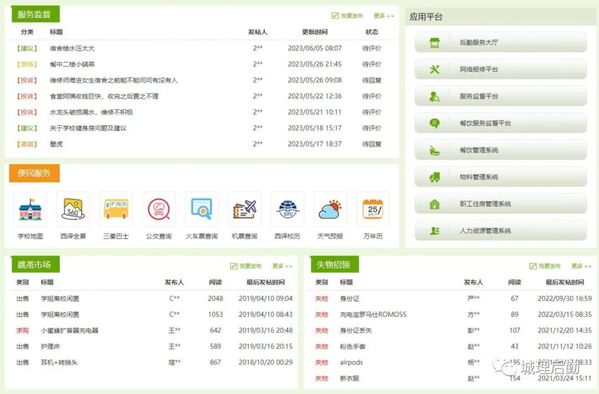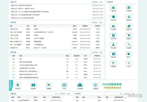 该校上线后勤服务大厅,整合了网上报修平台、服务监督平台、公寓住宿、饮食服务、物业服务、用电查询、校卡服务、医疗保健、失物招领等校园服务应用。通过建立信息化服务平台,设立一体化的服务中心,提供自助服务功能,为服务体系打造了集信息、咨询、报修、投诉为一体的服务平台。师生可以通过网站、APP、微信等渠道实现宿舍报修、餐饮预定等服务,信息化服务满足了师生需求,提高了服务质量、服务效率。建立了安全预警系统,可以及时监测和预警各项安全隐患,确保师生的身心安全。