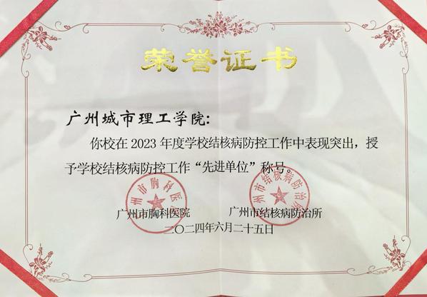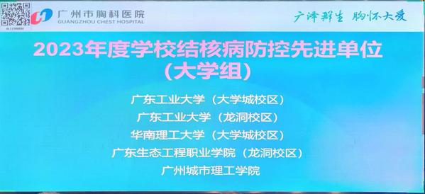 据悉,广州市2023年学校结核病防控先进单位(大学组)共有5所高校/校区获得此称号,我校位列其中,充分显示了学校在结核病防控领域的显著成效和突出成绩。这一荣誉的取得,离不开学校领导的高度重视和精心指导,也离不开卫生所与各二级学院辅导员的密切配合以及全校师生的共同努力。