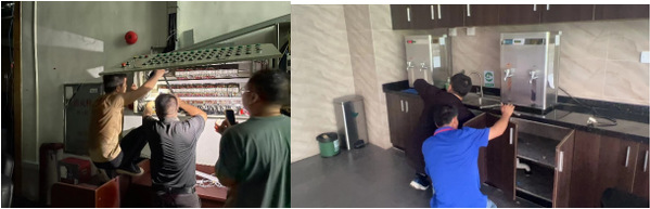 为确保新学期教学设备正常运行,我校后勤处利用暑期,对行政楼、学生活动中心及教学楼进行了饮水机滤芯更换,检修了音响设备,更新了课室黑板,避免与投影幕交叠,扩展书写空间,为师生提供了更优质的教学环境。