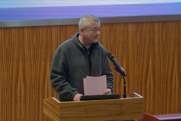 后勤处副处长归凤坤在会上讲话(学生传媒中心摄)