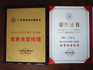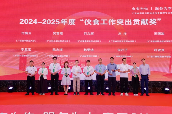 5月14-16日,广东省高校后勤协会伙食管理专业委员会2024-2025年度年会暨评优表彰大会在广东江门召开,我校后勤处林雯洁凭借在伙食工作领域的突出表现,荣获“伙食工作突出贡献奖”,学校第四食堂经理付紫阳荣获“优秀食堂经理”称号。