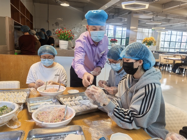 (学生代表们学习包饺子 林雯洁摄)
